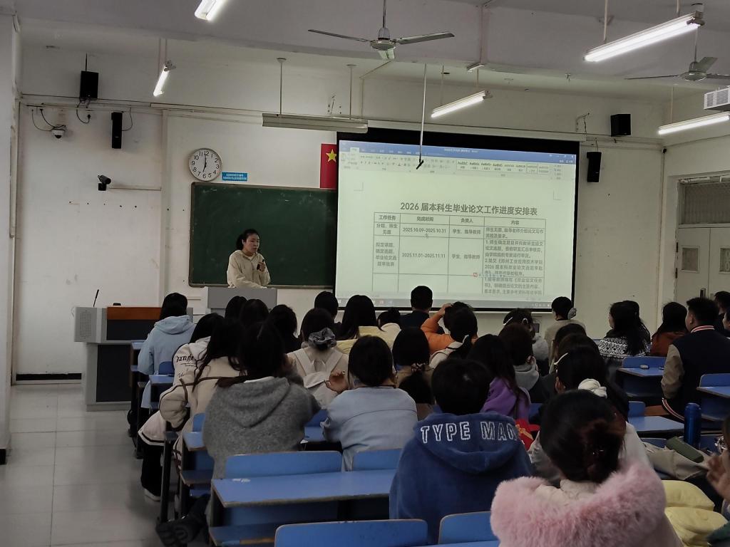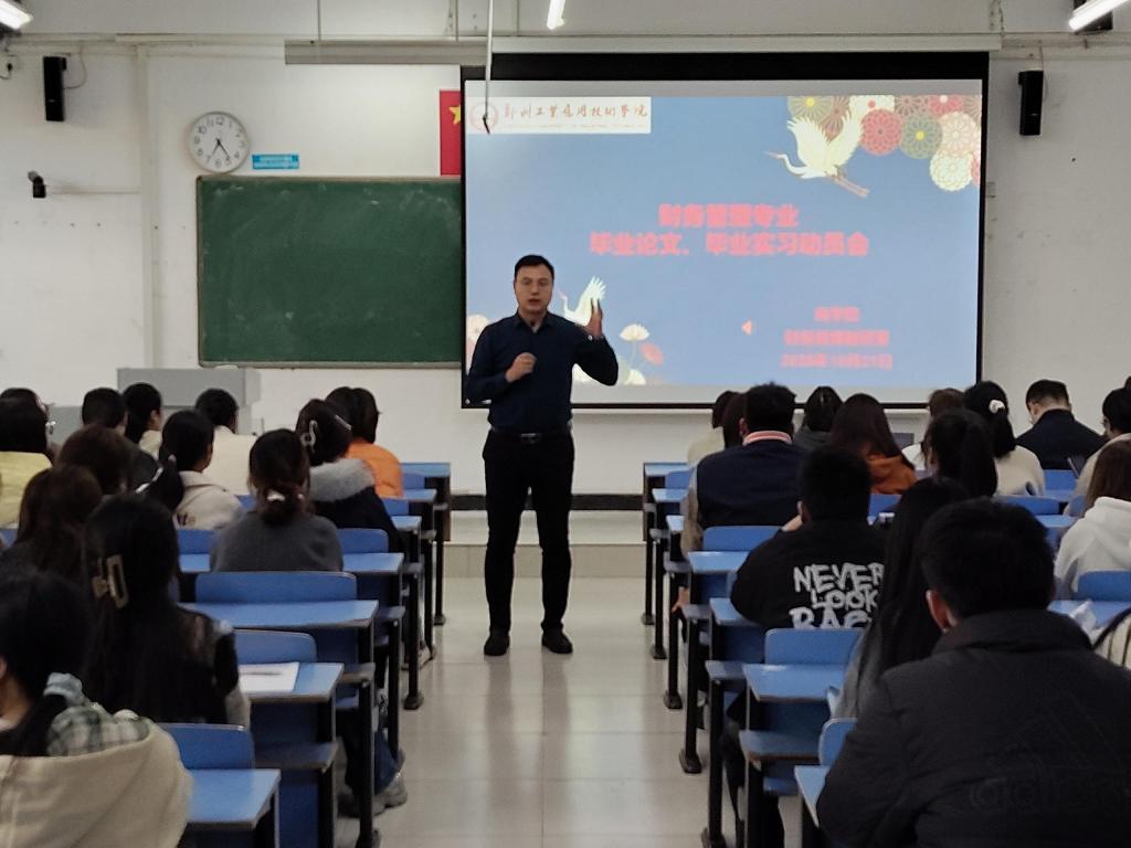 为扎实推进2026届本科毕业生毕业论文与毕业实习工作,帮助学生明确任务要求、强化过程管理,10月21日下午,财务管理专业于文化3-110教室召开毕业论文与毕业实习动员大会。本次会议由吕秋莲老师主持,财务管理专业全体老师及全体毕业生参会。