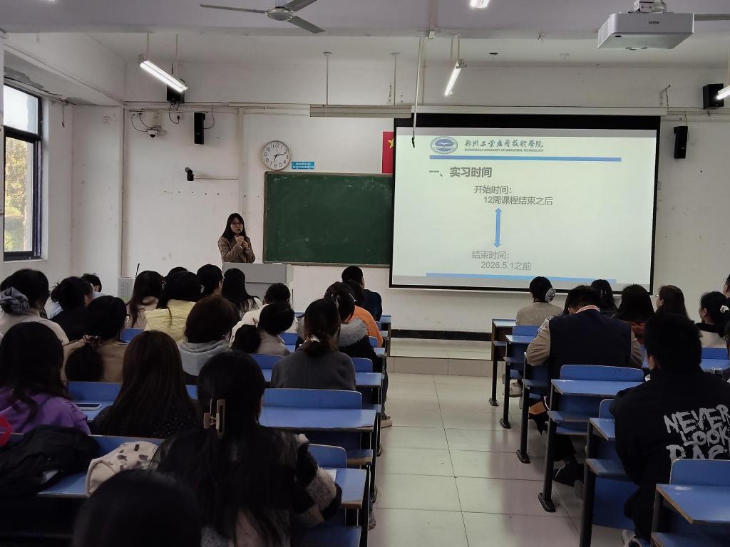 其次,毕业实习负责人刘慧佳老师针对毕业实习的要求做出了具体说明。刘慧佳老师强调实习是连接校园和社会的桥梁,通过实习学生不仅完成毕业前的最后一项工作,更是真正踏入社会的准备。刘老师还强调学生在实习的过程中要遵循指导老师的要求,为最后的毕业做好准备。