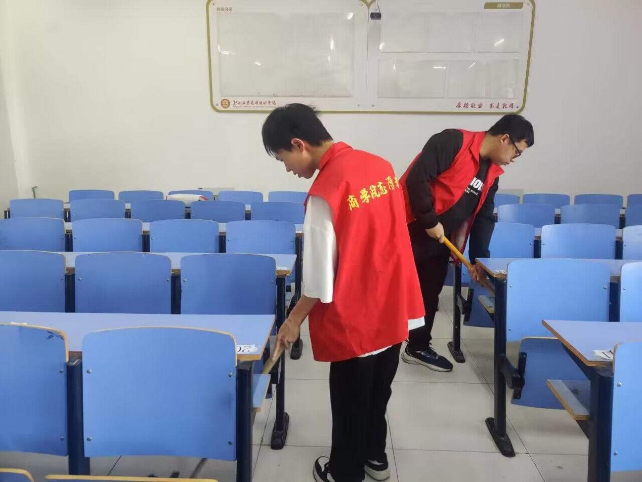 为了增强第40期入党积极分子的社会责任感和奉献意识,加强校园环境建设,11月1日,商学院党委组织第40期入党积极分子对商学院教室开展教室清扫实践活动。