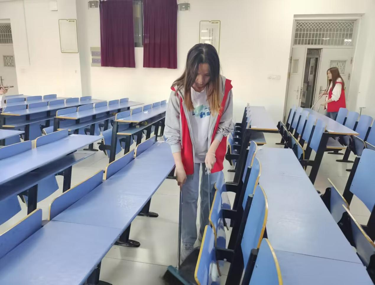 入党积极分子们拿起事先准备好的扫帚、垃圾袋等卫生工具开始清理垃圾,在整个打扫卫生的过程中,大家各司其职,分工合作,认真负责,一丝不苟。“民生在勤,勤则不匮”,经过积极分子们的辛勤劳动,不仅改善了教室环境,同时营造了共建文明校园的良好氛围。