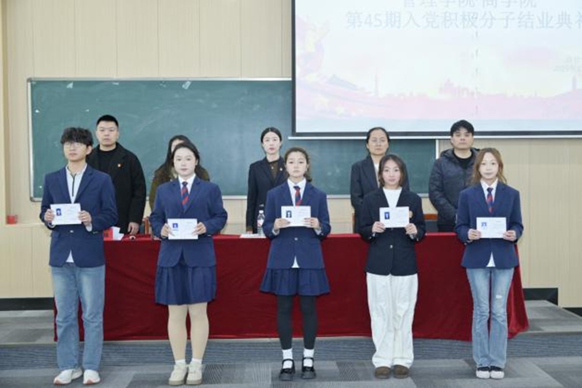 会议伊始,尹向前老师宣读第45期积极分子考试通过名单。与会领导为学员代表颁发结业证书并合影留念,现场掌声热烈。优秀学员代表刘文欣在发言中分享了培训期间的学习感悟,她表示将以此次培训为起点,在理论学习与实践行动中持续提升党性修养。