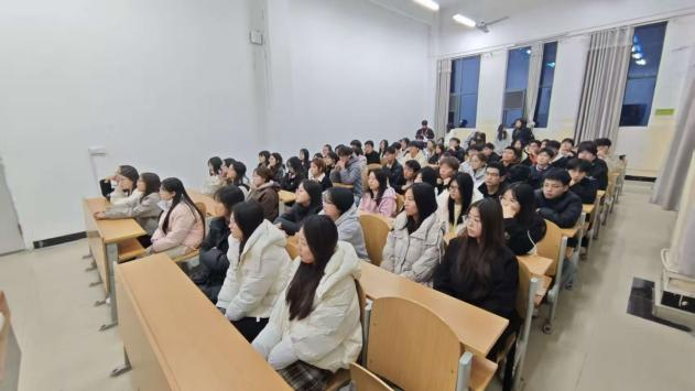 活动现场,学习氛围浓厚,思想交流热烈。主讲人以“政策与专业”为核心抓手,深入浅出解读全会核心要义:从商科视角切入,结合企业数字化转型案例拆解“新质生产力”的内涵,让同学们清晰看到政策与专业领域的连接点。现场播放的国家发展成果短片引发强烈共鸣。不少同学边看边记录,深刻感受到“国家发展”与“个人成长”的紧密关联,更明晰了商科青年的责任方向。
