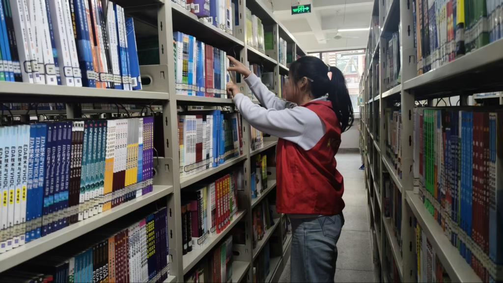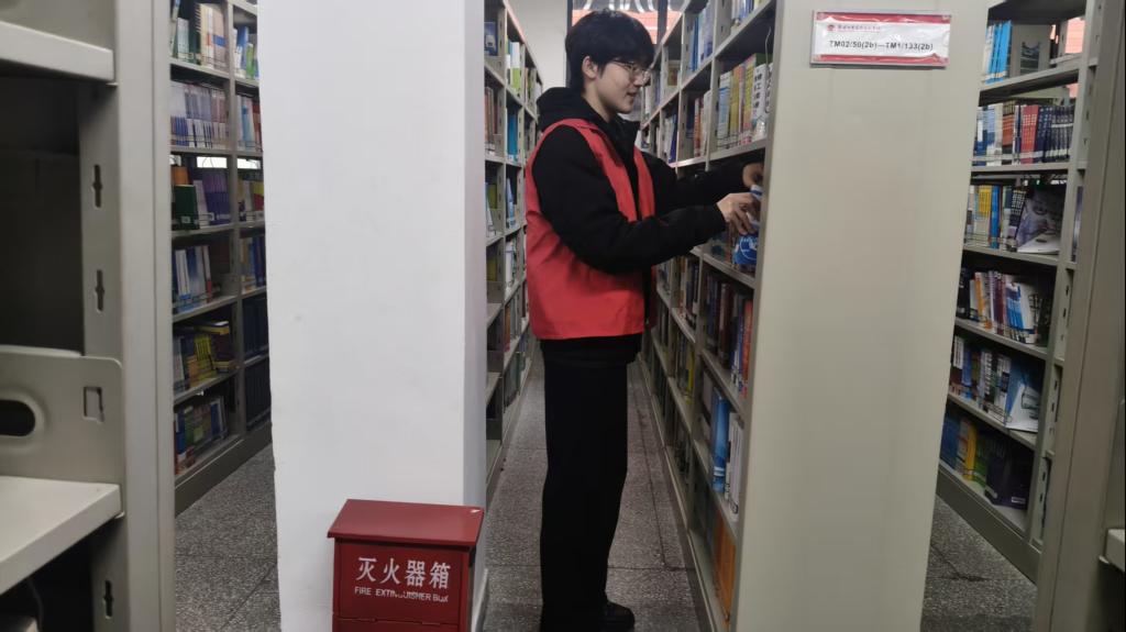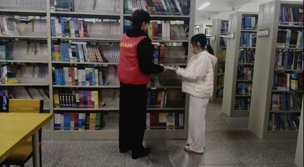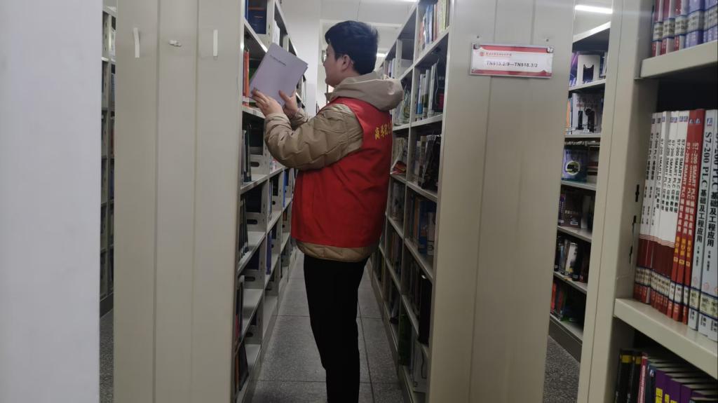 活动期间,团员教育中心的志愿者们化身图书馆的“守护者”,秉持耐心细致的态度,全面开展图书整理与借阅引导工作。在书架区域,志愿者们按照索书号顺序,仔细归位错位图书,擦拭书架灰尘,整理破损书页,确保每一本书都能精准定位、完好呈现;同时耐心解答同学们的借阅疑问,协助查找文献资料,引导大家文明借阅、有序归还。