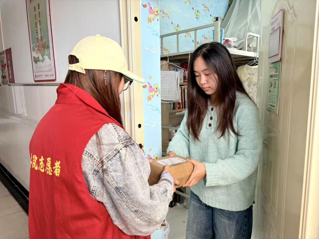 活动中,志愿者们提前与行动不便的同学取得联系,详细了解其日常需求,在上下课高峰时段主动陪同前往教室、食堂,协助搬运书本、搀扶行走;在取件高峰期,主动帮忙代取快递并送至宿舍门口。志愿者们耐心细致的服务,有效解决了行动不便同学在校园生活中遇到的实际困难,让他们感受到了来自学校大家庭的关怀与温暖。