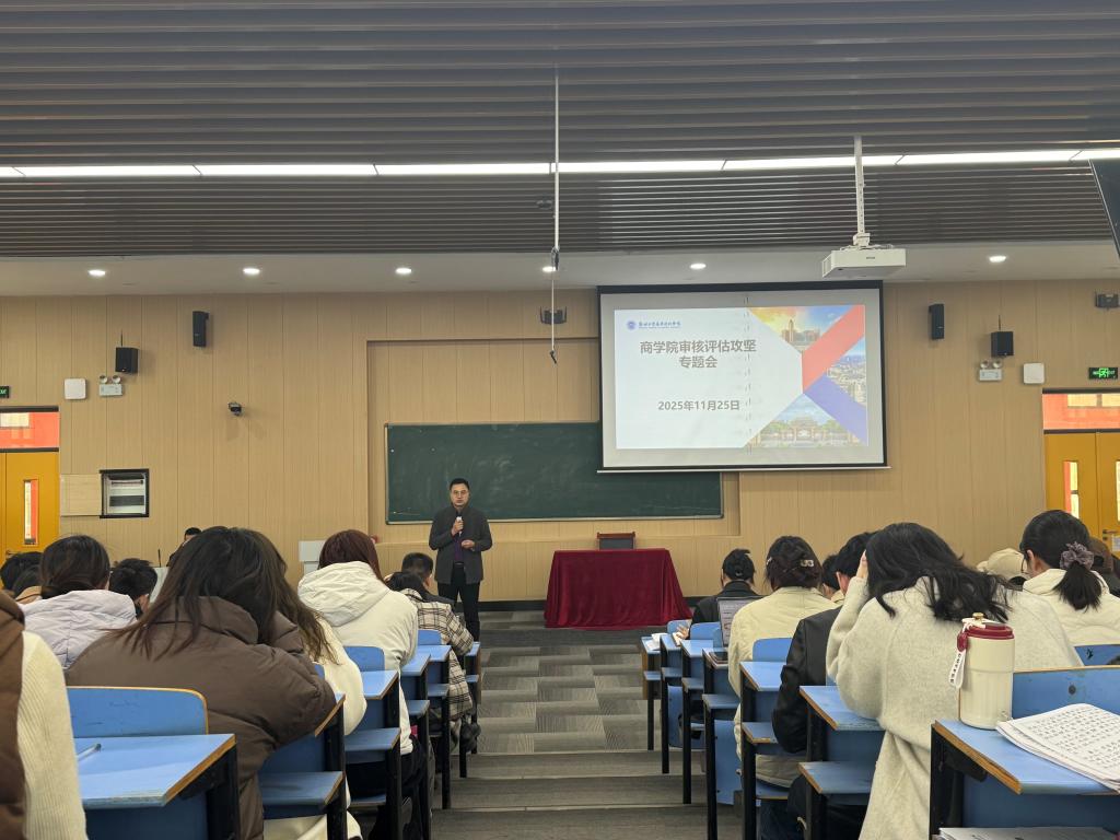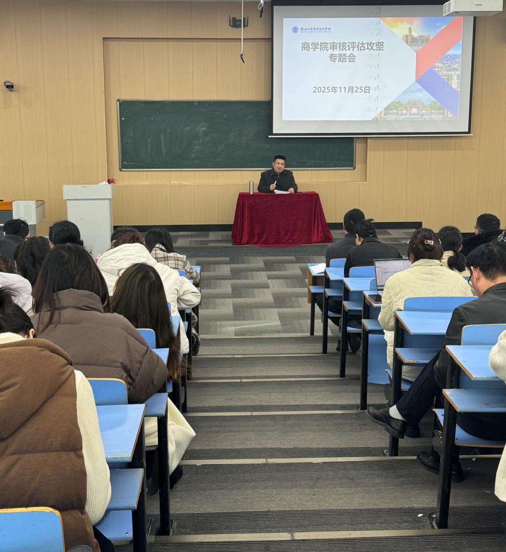 2025年11月25日,商学院在文华3-阶五召开审核评估攻坚专题会。商学院院长全淅玉教授等班子成员出席会议,全体教职工参会。