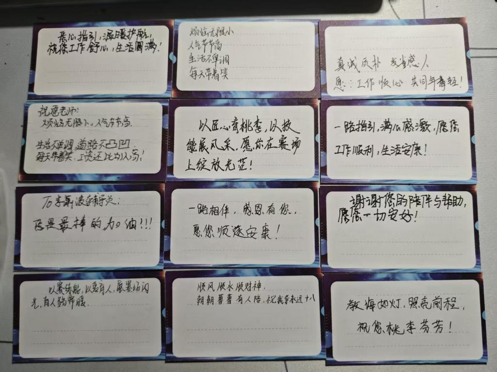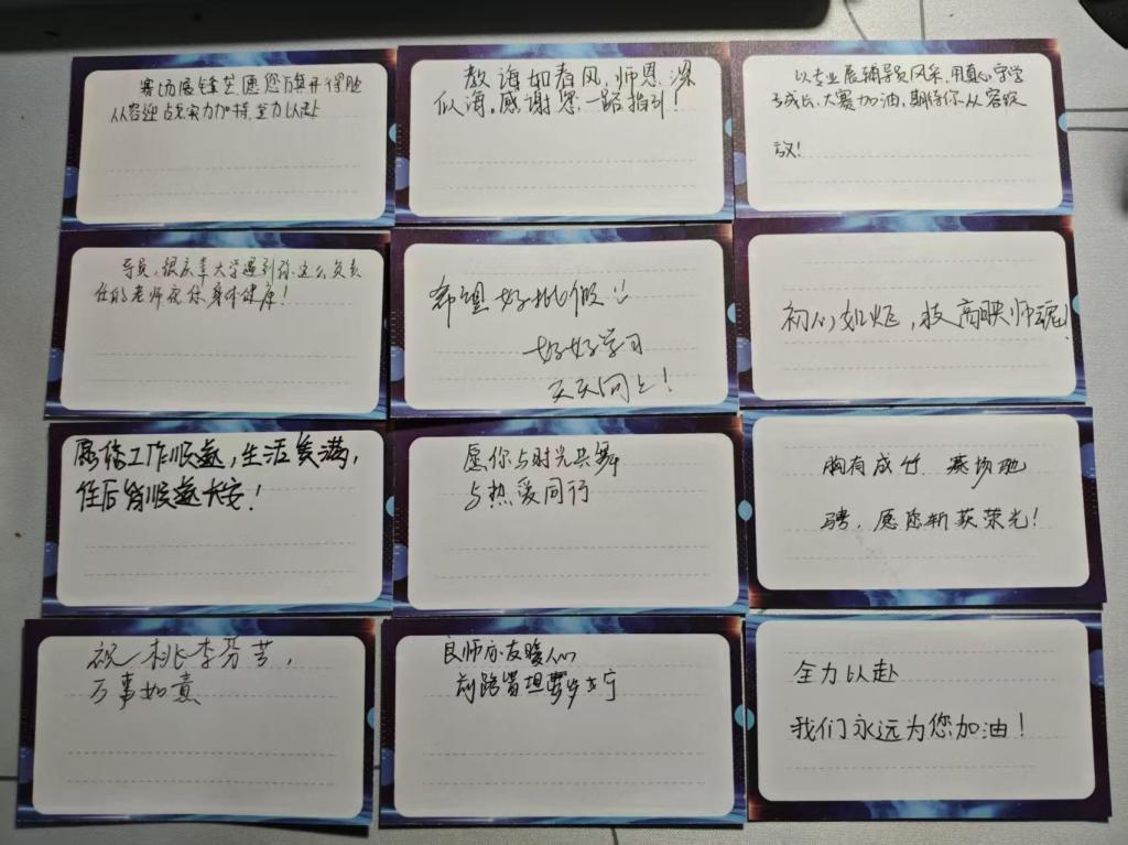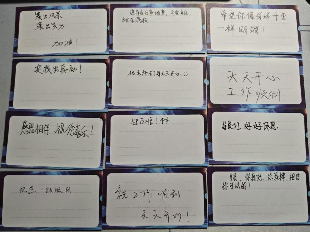 本次比赛的成功举办,进一步强化了育人使命感和专业认同感。现场观赛的学生代表也向辅导员们赠送了手写祝福贺卡,一句句“老师辛苦了”“感谢您一路陪伴”传递出真挚的师生情谊。未来,学部将继续以赛促建、以赛促学,推动辅导员队伍建设专业化、职业化发展,为学子成长成才提供坚实保障。