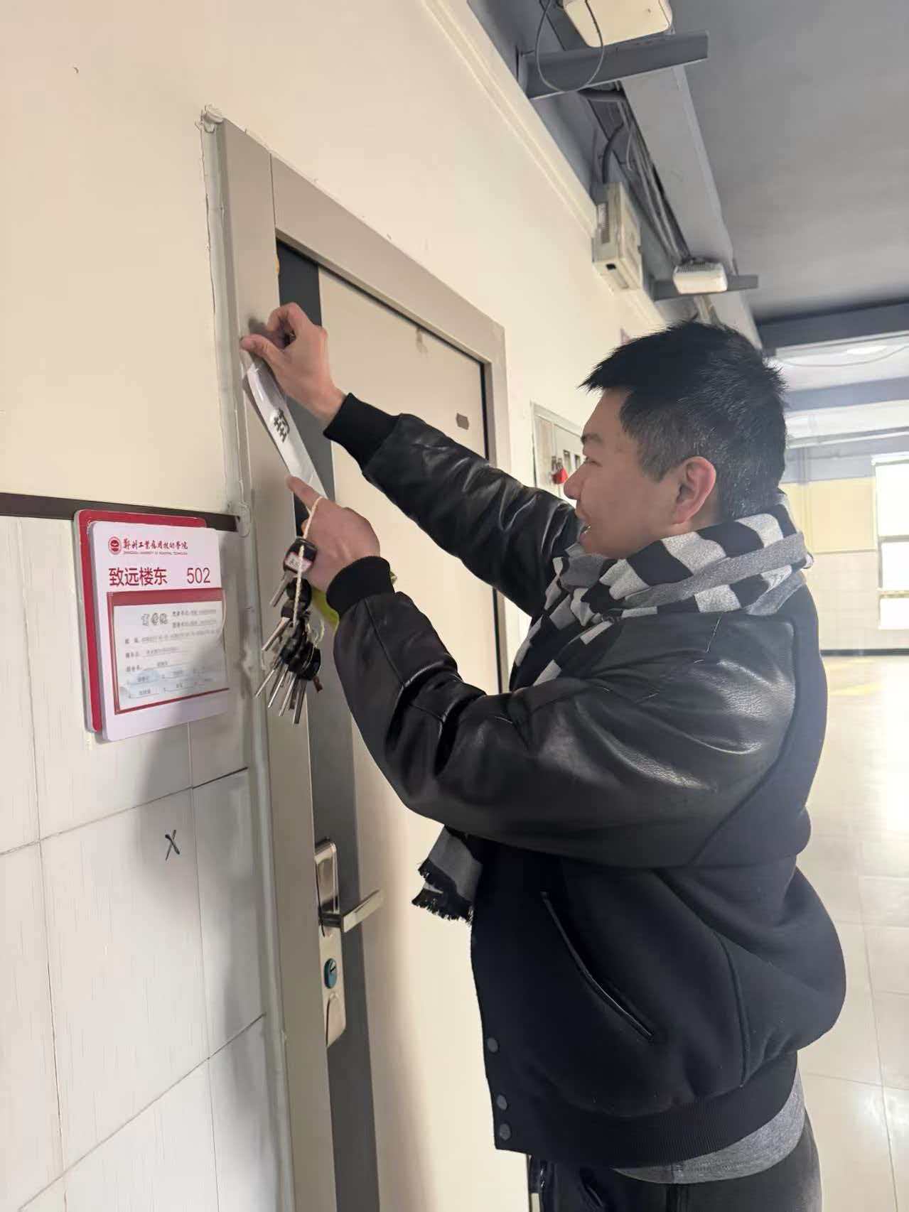 检查过程中,学院领导与辅导员们坚持“全覆盖、无死角、零容忍”原则,对每间宿舍进行地毯式细致核查。针对离校学生宿舍,检查组逐一查验门锁牢固性,规范完成封条张贴,明确封闭管理责任,杜绝无关人员进入;聚焦用电安全核心环节,逐一对电源插座、台灯、充电器等电器设备的断电情况进行排查,对未规范关闭的电源当场切断,对存在老化风险的线路、违规使用的大功率电器等潜在隐患及时记录处置,从源头遏制用电安全事故发生;同时,同步检查宿舍直饮水机、水管阀门等生活设施的运行状态与关闭情况,确保假期公共设施安全可控,避免出现漏水、设备故障等问题。