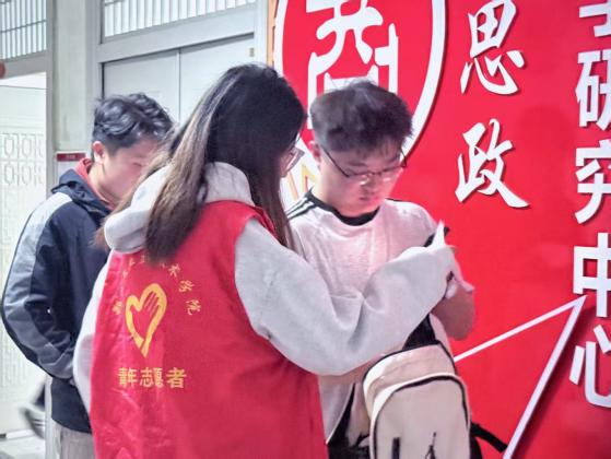 考场之外,商学院志愿者们全程坚守岗位,以热情饱满的状态、细致周到的服务,为考生提供路线指引、疑问解答、贴心帮扶等全方位保障,用温暖与坚守为每一位追梦少年保驾护航,尽显商院学子的责任与担当。