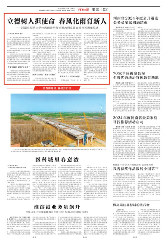 第三届全国高校思政课教学展示活动中,河南获奖教师人数位居全国第一;在全国首创发布《河南省高校马克思主义学院发展报告》,引导各类马克思主义学院学有样板、做有示范、干有标杆……