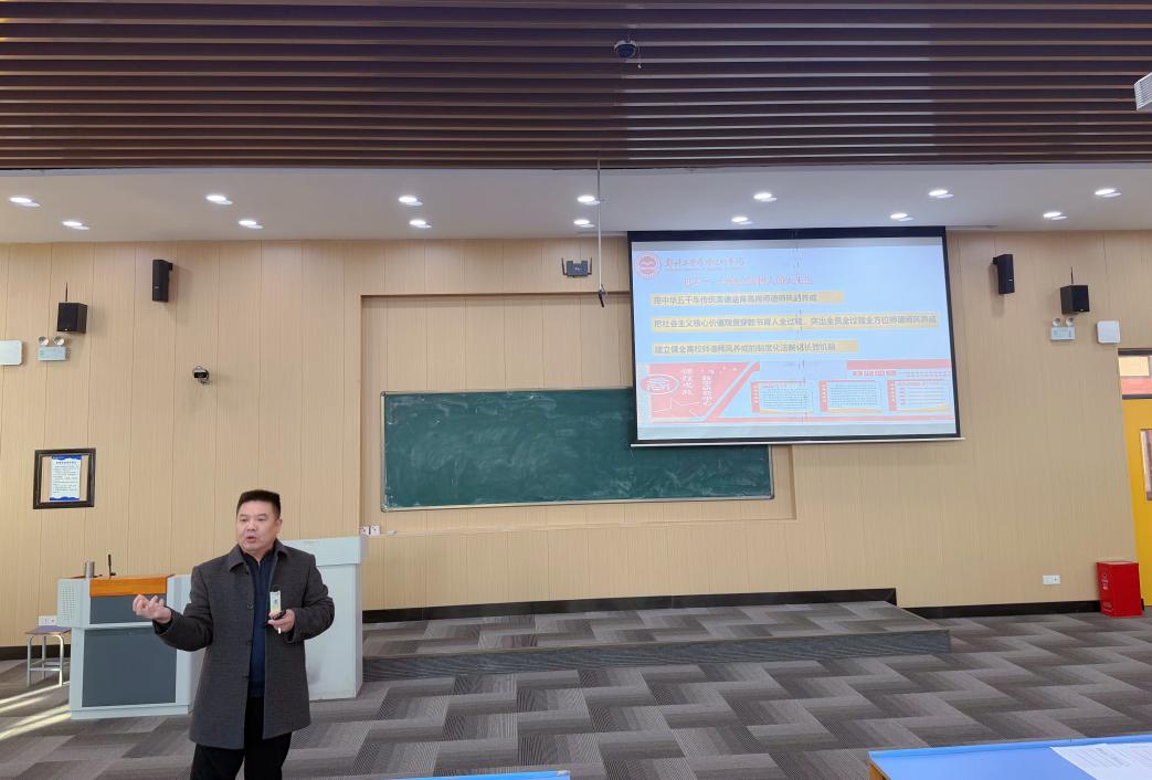 为深入推进课程思政建设,落实立德树人根本任务,提升教师课程思政教学能力,2026年1月7日上午,商学院在文华3-阶5教室组织开展课程思政建设与实践专题培训。本次培训由商学院全淅玉院长主讲,相关教师参与此次学习。